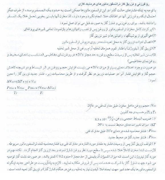 دستورالعمل تزریق گاز به ترانسفورماتورهای هرمتیک گازی